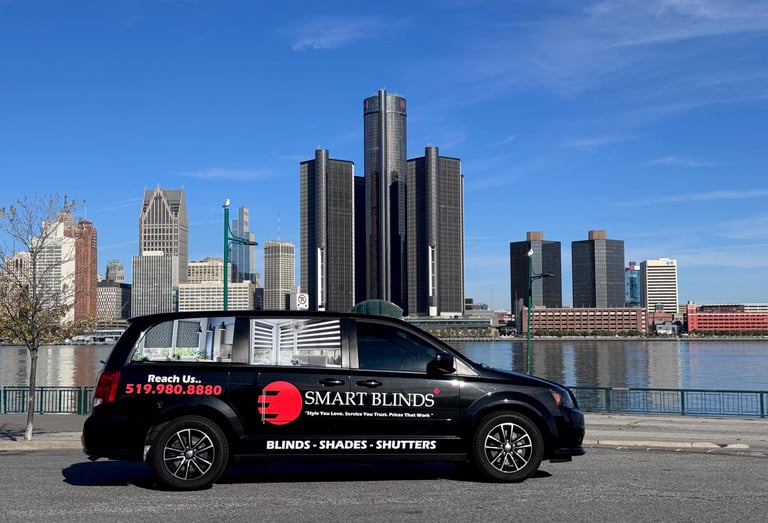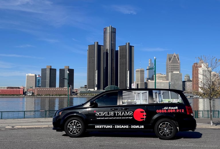 Our Smart Blinds experts proudly serve clients in Chatham, Windsor, Leamington, Harrow, Sarnia, Kitchener, Moncton, Halifax, and Charlottetown. Weβll visit your home, office, or commercial space, recommend the perfect indoor or outdoor window treatments for your needs, and provide a customized, no-obligation quote on the spot.
